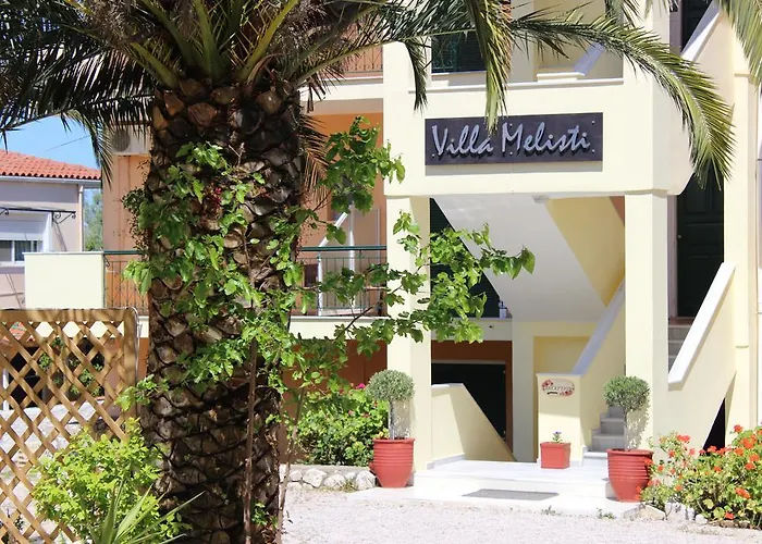 Villa Melisti, elektrikli su ısıtıcısı, buzdolabı, fırın gibi olanakların yanı sıra veranda, balkon, uydu kanallı düz ekran televizyon ile donatılmış 12 oda sunmaktadır. Dağ manzarası sunulmaktadır. Ekstralar arasında ayrı tuvalet, duş bulunmaktadır.